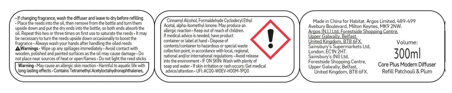 Habitat 300ml Diffuser Refill – Patchouli & Plum