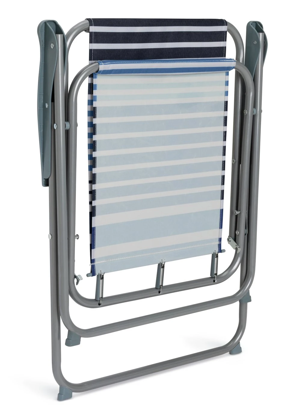 Soak up the sunshine wherever you are with our folding fabric garden chair. We’re big fans of its striped blue and white design. And with a collapsible tubular metal frame, it’s super light to carry around and store when not in use. Picnic in the park or day at the beach? That’s summer, sorted.