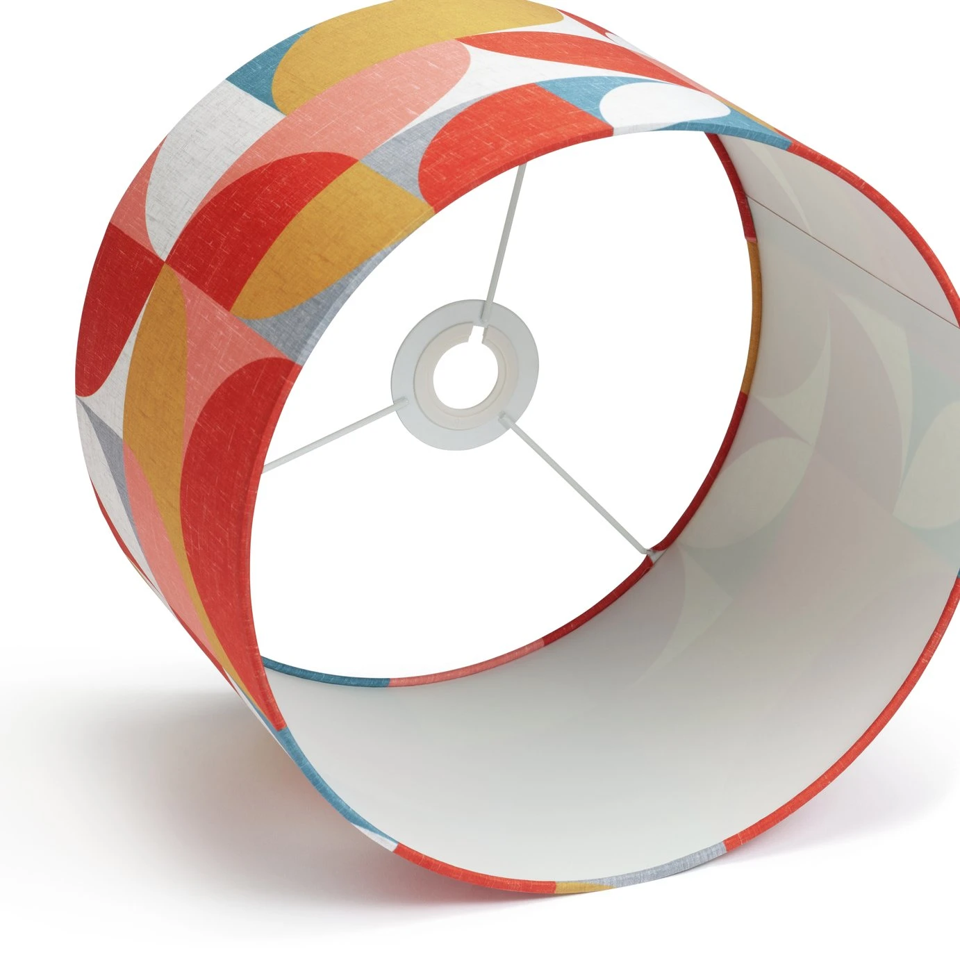 All hail, mid-century design. The era that gave us Danish chairs and Japanese coffee tables comes alive in the geometric patterns of this light weight printed fabric shade. Hues of pink, mustard, indigo and white create a cool palate that’s bang on trend this season. Place it atop any lamp you choose and pairwith yourfavouritevintage finds or new pieces. Instantly creates a stylish with a nod to the heyday of interior design.