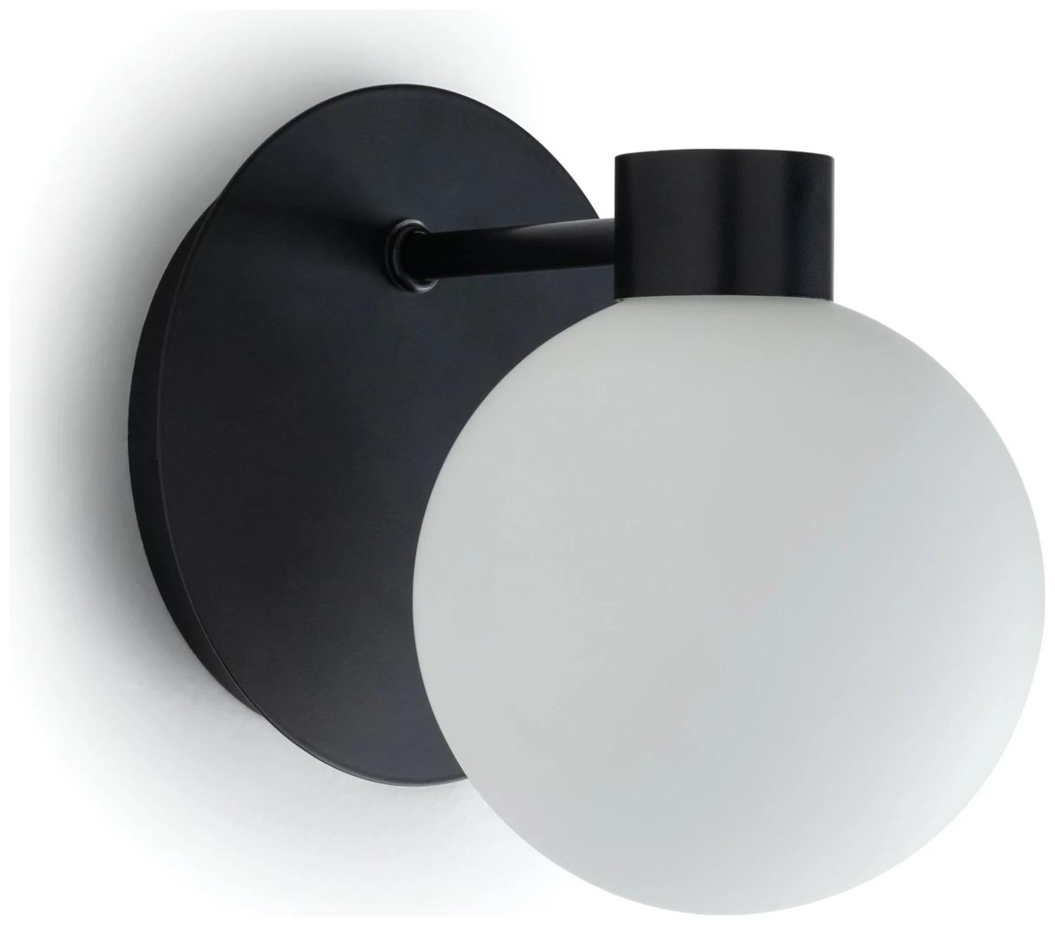Make a splash. Finished in sleek black sprayed steel, with an opal glass shade, this lovely wall light has an IP rating of 44, making it ideal for your bathroom. Its classic design brings a fresh, luxe look to a bright modern layout or a spot of drama to a darker scheme. Clever that. Fit with a dimmer switch and enjoy several levels of calm, diffuse light at the touch of a button. Lovely.