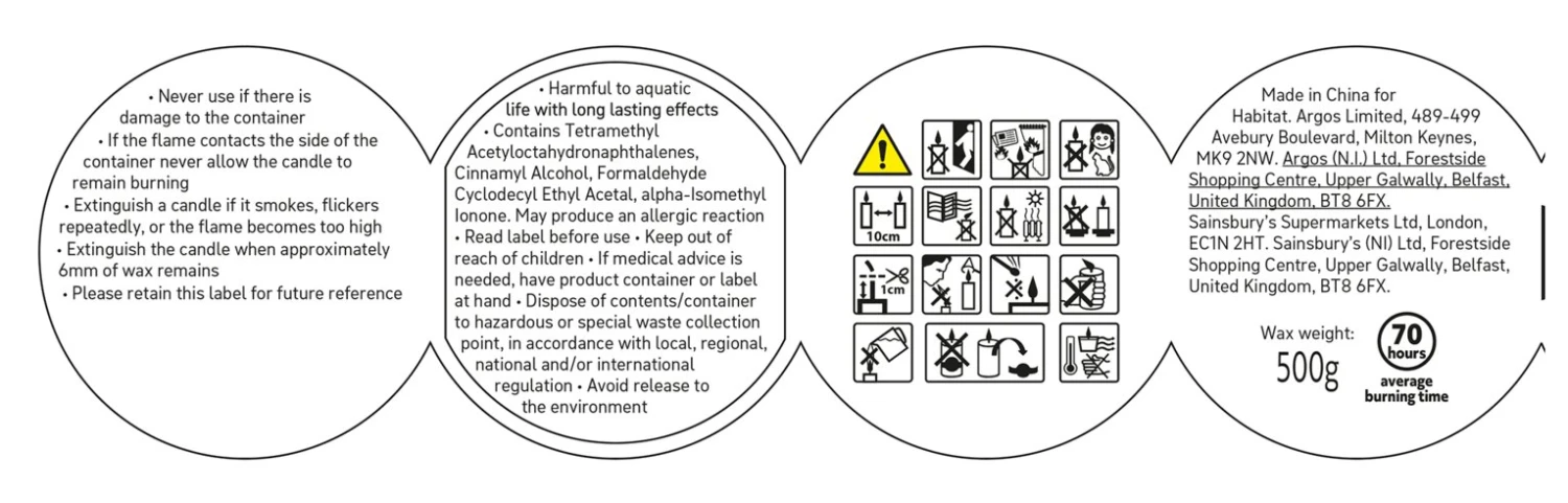 - Approximate burn time 70 hours.