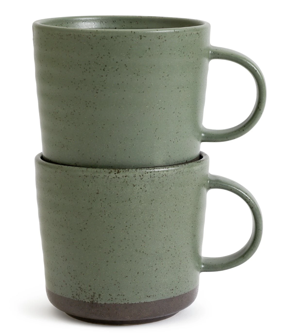 4 soothing cuppas coming right up. Our set of 4 sage mugs have a tactile yet subtle ripple texture. The contrasting dipped effect at the base adds to the calm modern design. In speckled stoneware, they’re a stylish choice. And they’re robust enough to stay looking good for years. That’s a great start.